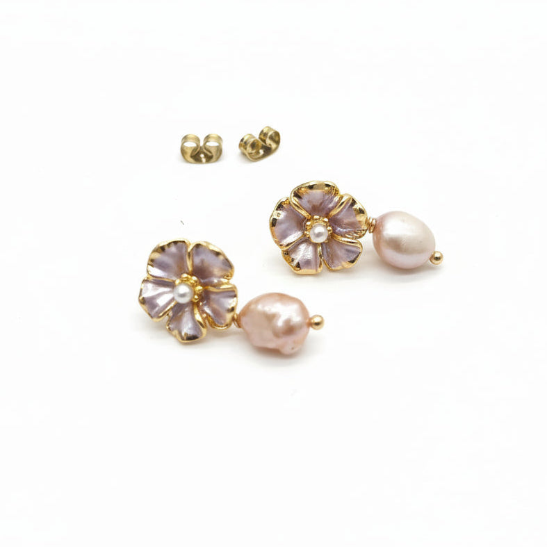 Eleganti un sievišķīgi auskari ar pērlēm, kas izgatavoti no kvalitatīvas zeltītas bronzas un papildināti ar dabīgām saldūdens pērlēm. Katra pērle ir unikāla ar savu formu un maigo mirdzumu, piešķirot rotai dabisku šarmu un vieglu romantisku noskaņu.
