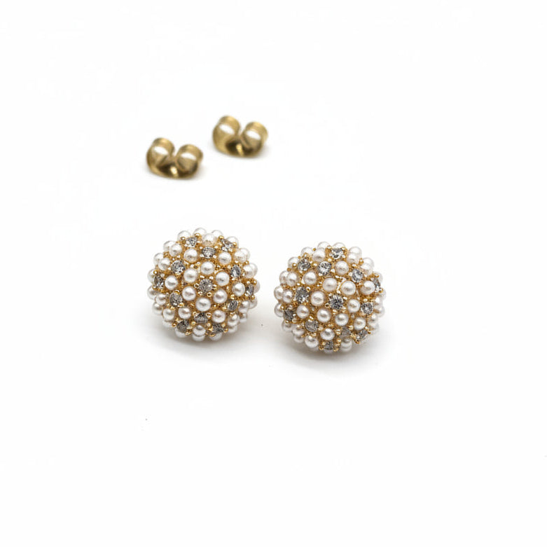 Eleganti un sievišķīgi auskari ar pērlēm, kas izgatavoti no kvalitatīvas zeltītas bronzas un papildināti ar dabīgām saldūdens pērlēm. Katra pērle ir unikāla ar savu formu un maigo mirdzumu, piešķirot rotai dabisku šarmu un vieglu romantisku noskaņu.