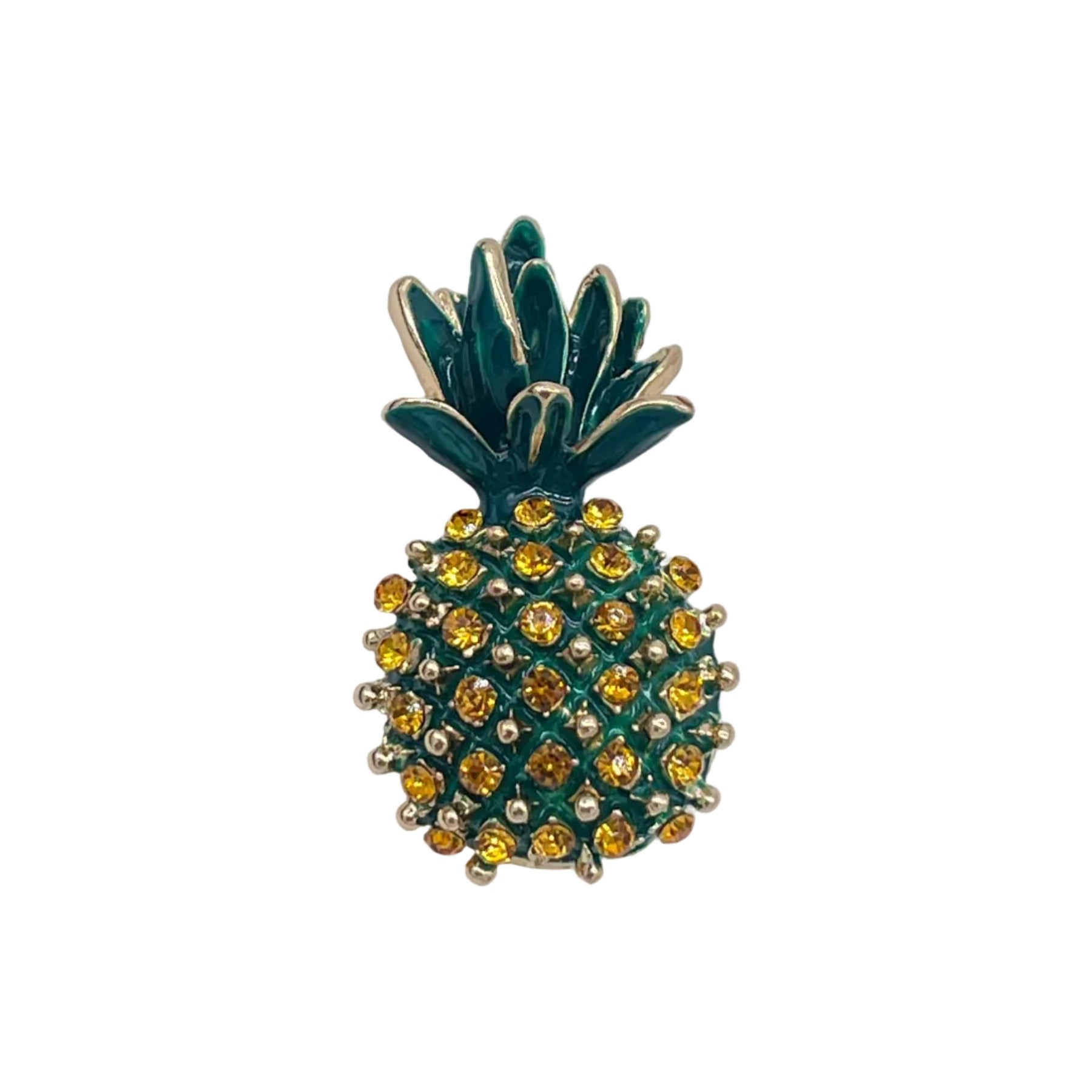 Izvēlies šo ananāsa brošu ar kristāliem, lai piešķirtu savam stilam spilgtumu, eleganci un vasarīgu noskaņu visa gada garumā. ✨